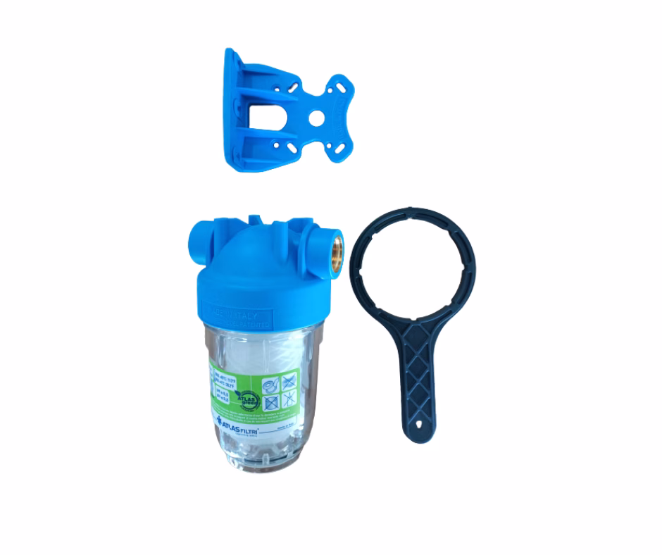 Clé en plastique pour serrer et desserer la cuve une fois le filtre à eau est fixé sur le mur.